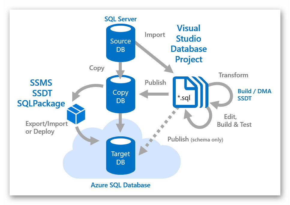 - Über einen Build-Prozess des Projektes oder die Ergebnisse aus dem Data Migration Assistant die entsprechenden Änderungen an Schema, Struktur und Funktionen identifizieren.