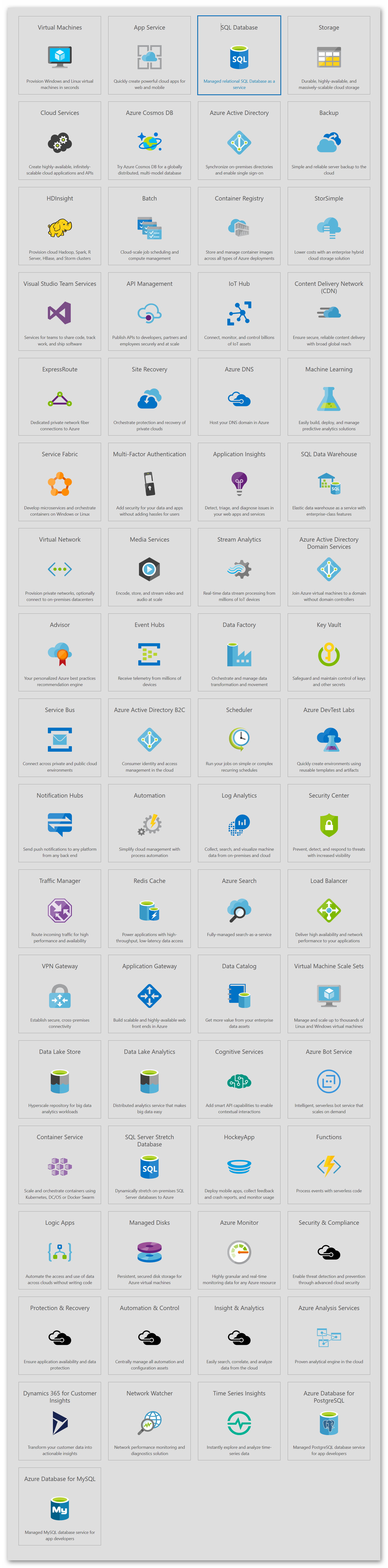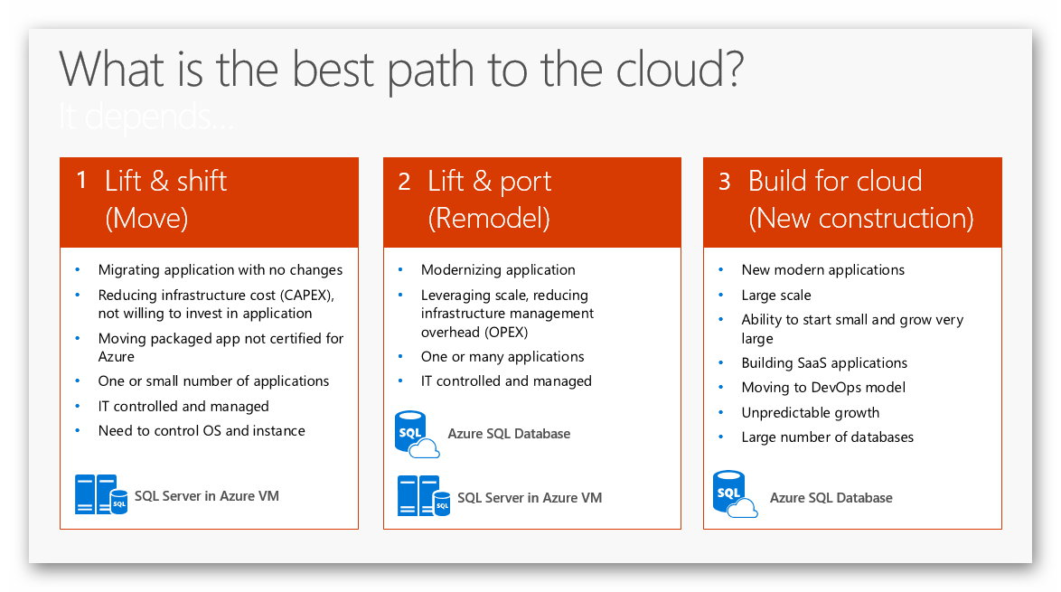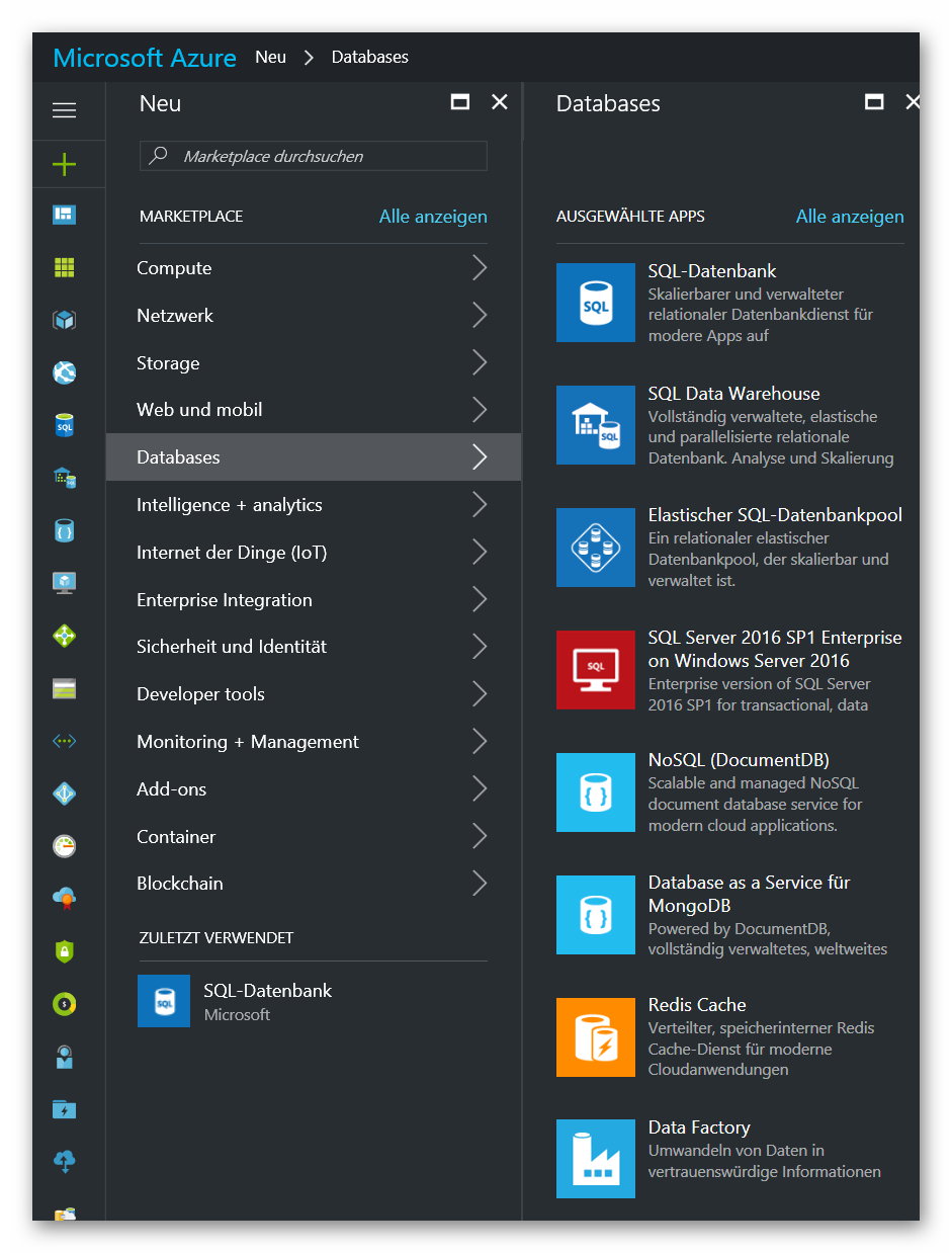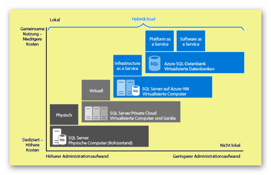 ... oder über SQL-Server Datenbanken in virtuellen Maschinen in der Cloud und bis zu reinen SQL-Datenbanken als Service in Azure: