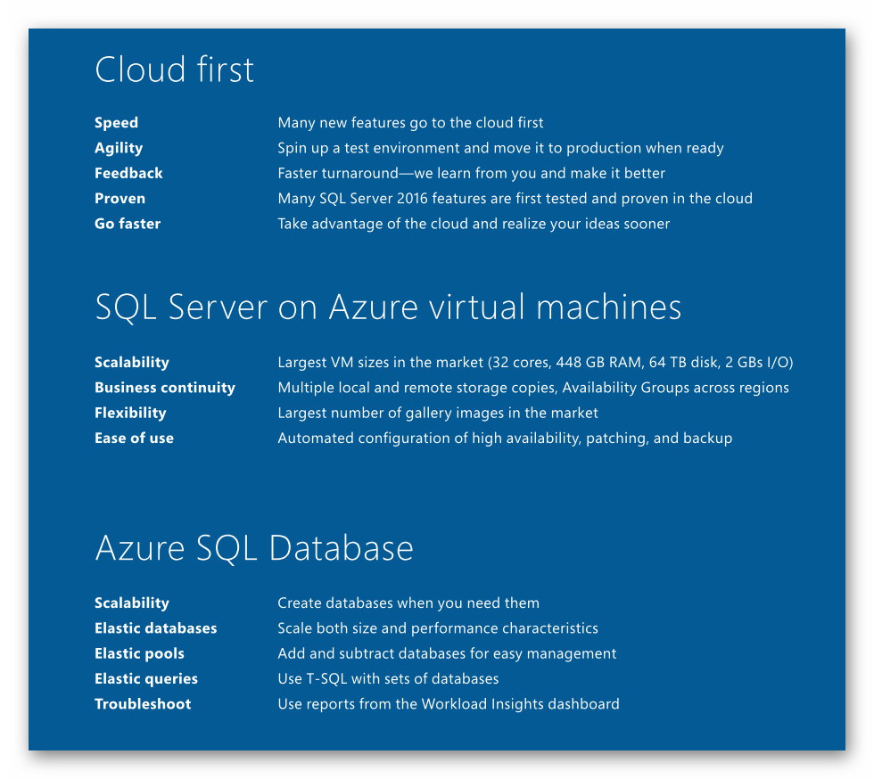Durch den Cloud first Ansatz von Microsoft stehen mittlerweile neue und erweiterte Funktionalitäten zuerst in Azure zur Verfügung und erhalten erst dann Einzug in den SQL-Server.